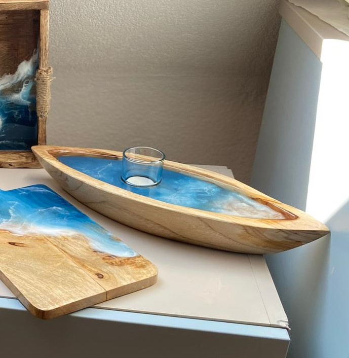 Tohle zrcadlo s mořským designem a svícen ve tvaru dřevěné loďky vznikly přesně takhle. Jen z pocitu, že chci tvořit něco, co voní mořem, dřevem a klidem. V tu chvíli jsem vůbec netušila, komu budou patřit.